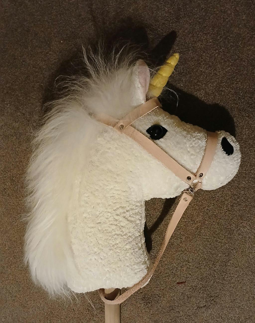 Cheval de bataille bio ou mini cheval de bataille « licorne » (au choix) , 100% coton biologique, couleur. peluche blanche, yeux noirs (sécurisés selon EN71), crinière blanche en fourrure Heidschnucken, tannage végétal.